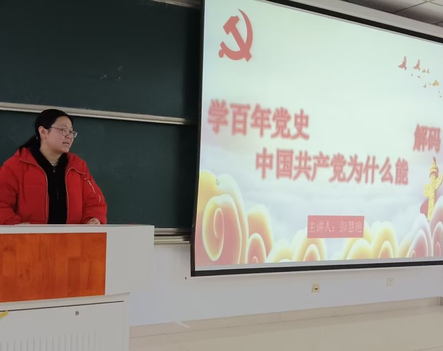 彭慧艷老師圍繞百年黨史,以“中國共產(chǎn)黨為什么能”這一主題進(jìn)行發(fā)言。她從中國共產(chǎn)黨的豐功偉績出發(fā),講述中國共產(chǎn)黨在馬克思主義的帶領(lǐng)下茁壯成長,最終建立新中國的輝煌歷史,論述了馬克思主義對中國共產(chǎn)黨的重要意義。
