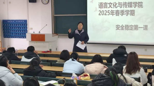3月4日中午12:10,語(yǔ)言文化與傳媒學(xué)院安全教育第一課在一區(qū)善思樓C座101教室順利舉行。本次活動(dòng)由語(yǔ)言文化與傳媒學(xué)院黨委副書(shū)記張愛(ài)萍主持,語(yǔ)言文化與傳媒學(xué)院團(tuán)委負(fù)責(zé)老師竇思佳出席。