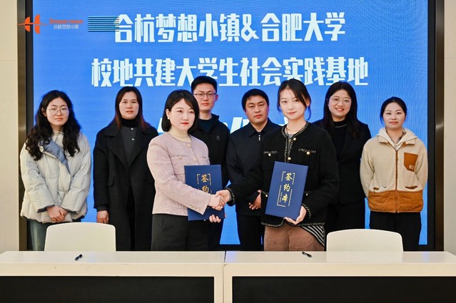 在大學生社會實踐基地簽約儀式上,合肥大學語言文化與傳媒學院團委負責人竇思佳與合杭夢想小鎮(zhèn)項目總經(jīng)理馮小俠作為代表鄭重簽署合作協(xié)議,明確雙方在人才培養(yǎng)、實習實踐、科研轉(zhuǎn)化等方面的權(quán)利與義務,為長期合作筑牢根基。