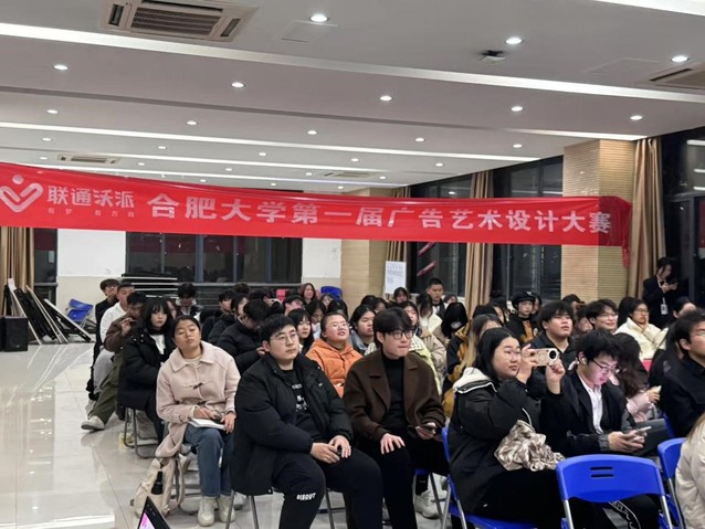 1227日下午6:30,語(yǔ)言文化與傳媒學(xué)院在三區(qū)學(xué)生活動(dòng)中心舉辦了合肥大學(xué)第一屆廣告藝術(shù)大賽決賽,本次比賽由合肥大學(xué)校區(qū)中國(guó)聯(lián)通贊助。出席本次決賽的嘉賓評(píng)委分別是中國(guó)聯(lián)通合肥大學(xué)校區(qū)江春陽(yáng)經(jīng)理、新聞系陳麗君老師、語(yǔ)言文化與傳媒學(xué)院林世華老師、先進(jìn)制造工程學(xué)院新媒體中心主任宋往叡。此次決賽由祝佳敏主持。