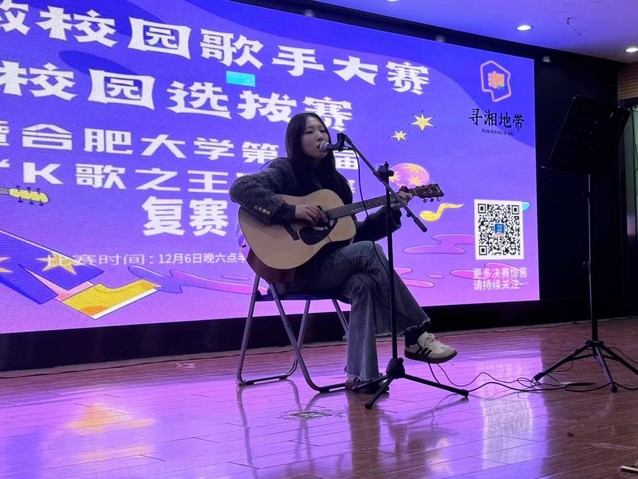 12月6日下午6:30,合肥大學(xué)在三區(qū)學(xué)生活動(dòng)中心舉辦了“尋湘地帶杯”首屆安徽校園歌手大賽校園選拔賽暨合肥大學(xué)第一屆K歌之王復(fù)賽,比賽由語(yǔ)言文化與傳媒學(xué)院張欣悅主持。