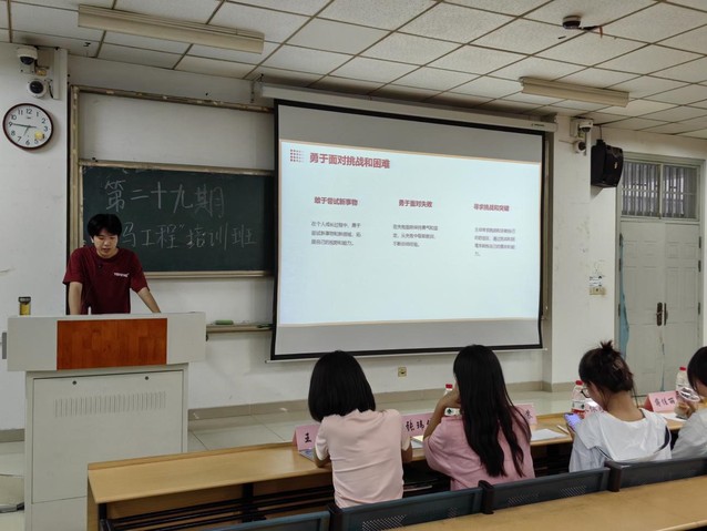 6月4日晚上6:30,第二十九期“青馬工程”培訓班總結(jié)大會于一區(qū)善思樓C座101教室圓滿結(jié)束,各組青馬學員代表通過精彩的演講匯報展示了他們在培訓期間的學習成果與心得。