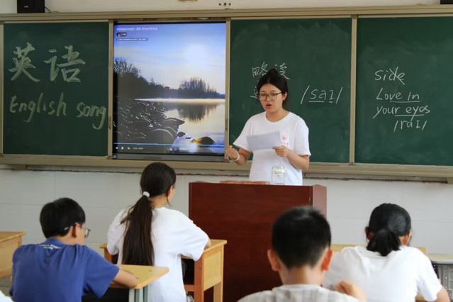 7月1日下午3:20,合肥大學(xué)語言文化與傳媒學(xué)院暑期三下鄉(xiāng)社會實踐教學(xué)組在石板沖鄉(xiāng)初級中學(xué)為當(dāng)?shù)貙W(xué)生帶來了一堂別開生面的英語課。此次課程由教學(xué)組成員劉嘉慧精心設(shè)計并授課,通過英語歌曲與課本知識相結(jié)合的方式,激發(fā)學(xué)生對英語學(xué)習(xí)的熱情,讓知識在歡樂中傳遞。
