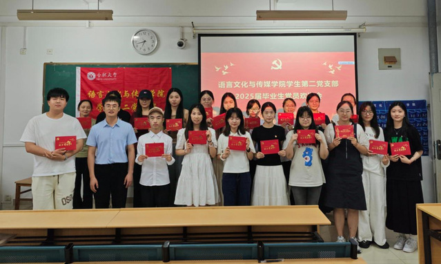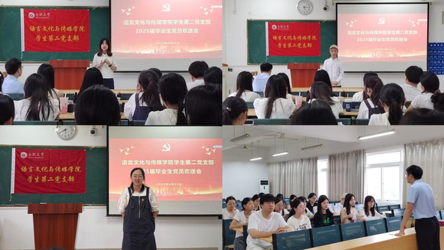 為慶祝中國共產(chǎn)黨成立104周年,推動深入貫徹中央八項規(guī)定精神學(xué)習(xí)教育走深走實,近期,語言文化與傳媒學(xué)院學(xué)生第二黨支部在5棟309教室召開了2025屆畢業(yè)生黨員歡送會。