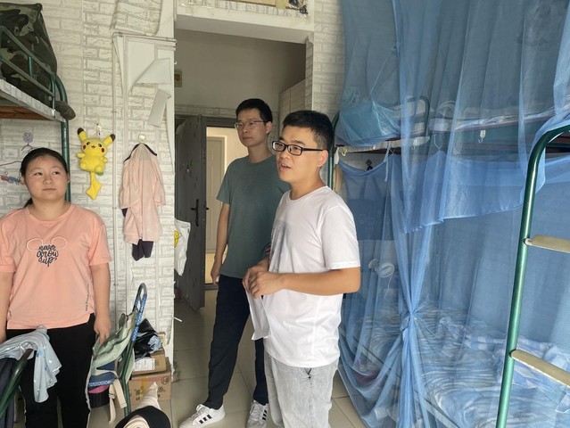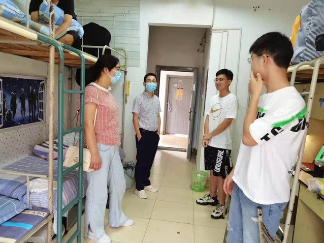 本次寢室走訪活動主要是為了及時了解學(xué)生的生活狀態(tài)。每走進一個寢室,老師都會仔細(xì)查看學(xué)生寢室設(shè)施,并把存在問題的寢室拍照記錄下來。老師們表示大家有問題可以及時向院系反應(yīng),院系的領(lǐng)導(dǎo)老師會幫助大家解決難題。他們親切的與學(xué)生交談,詢問學(xué)生學(xué)習(xí)和生活等情況,并提醒同學(xué)們在平常的生活中,務(wù)必注意財物安全、用電安全和人身安全,同時叮囑其保持宿舍衛(wèi)生、加強內(nèi)務(wù)整理。