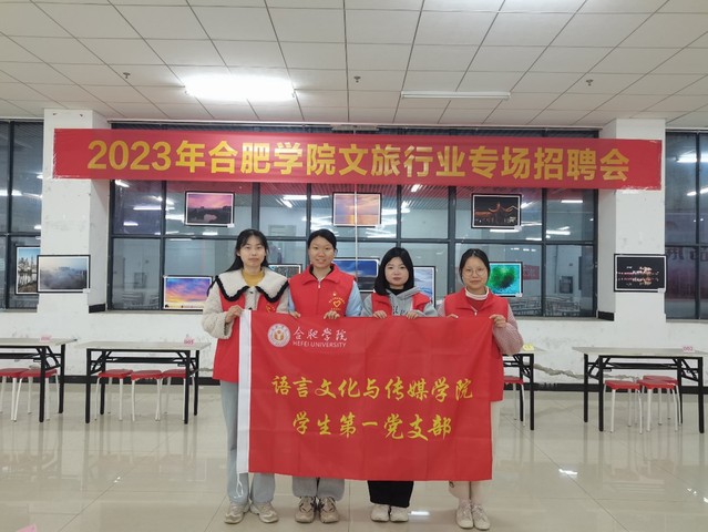 2023年3月16日星期四下午,語言文化與傳媒學院學生第一黨支部的學生黨員們來到了圖書館招聘廳,為2023年合肥學院文旅行業(yè)專場招聘會進行志愿服務活動。
