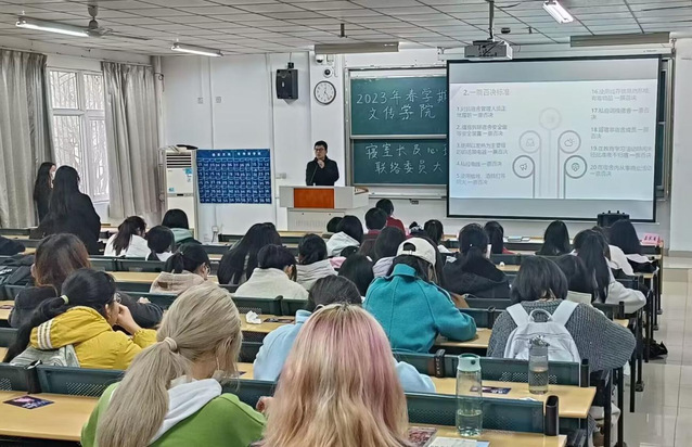 為了明確寢室長在文明寢室創(chuàng)建及寢室成員心理工作上的職責(zé),3月22日中午12:10,語言文化與傳媒學(xué)院2022-2023年春學(xué)期寢室長及心理聯(lián)絡(luò)員大會在一區(qū)善思樓C座101教室召開。本次會議由語言文化與傳媒學(xué)院學(xué)紀(jì)部副部王可主持,語言文化與傳媒學(xué)院學(xué)生工作辦公室主任顧盼盼、分團(tuán)委負(fù)責(zé)人劉政出席,語言文化與傳媒學(xué)院全體寢室長參加。