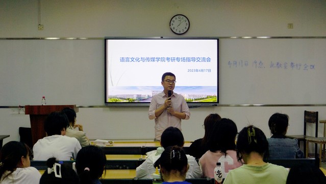4月17日晚七點,語言文化與傳媒學院“啟航青春”就業(yè)促進主題活動之考研專場指導會在一區(qū)善思樓C座106教室召開,語言文化與傳媒學院團委負責人劉政主持,我院五十余名學生報名參加。本次指導會榮幸地邀請到了北京啟航教育集團安徽分校校長胡守信作為主講人,向同學們指導講解考研相關知識內(nèi)容。