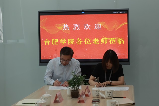 隨后,學生處處長丁增云與公司副總經(jīng)理王麗影共同為“大學生就業(yè)基地”揭牌。語言文化與傳媒學院黨委書記儲昭輝代表我院與安徽半語品牌管理有限公司共同簽訂了“就業(yè)實習基地”協(xié)議。