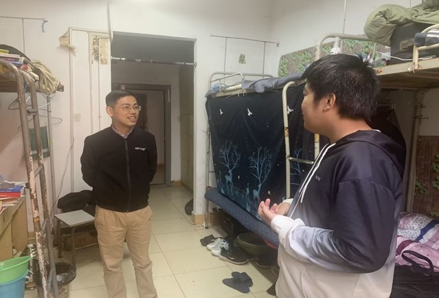 經(jīng)檢查,我院宿舍整體情況較好,未發(fā)現(xiàn)違禁電器,大部分寢室均能保持干凈整潔的環(huán)境。個(gè)別宿舍存在桌面雜亂、地面不潔等問(wèn)題。老師們?cè)跈z查過(guò)程中均逐一指出,積極教育并督促整改。之外,走訪過(guò)程中,老師們還詢問(wèn)了大家日常生活、學(xué)習(xí)情況及所遇到的困難。老師們悉心聆聽著學(xué)生們的困惑并為之一一解答,同學(xué)們也就如何創(chuàng)建文明宿舍提出自己的想法和意見,氣氛十分和諧融洽。