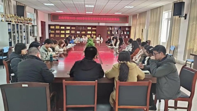 2023年2月17日中午12:00,語(yǔ)言文化與傳媒學(xué)院2022-2023學(xué)年春學(xué)期初學(xué)生思想動(dòng)態(tài)座談會(huì)在一區(qū)善思樓C座二樓會(huì)議室召開(kāi)。本次會(huì)議由語(yǔ)言文化與傳媒學(xué)院分團(tuán)委負(fù)責(zé)人劉政主持,學(xué)生工作辦公室主任顧盼盼、教學(xué)辦公室主任章衡、學(xué)生輔導(dǎo)員柳守志出席會(huì)議,各年級(jí)各班班長(zhǎng)及團(tuán)員代表參會(huì)。召開(kāi)此次會(huì)議的主要目的是為了了解學(xué)生證寒假期間對(duì)于國(guó)家疫情防控、社會(huì)發(fā)展和就業(yè)等個(gè)人發(fā)展的認(rèn)識(shí),聽(tīng)取對(duì)學(xué)校日常管理的評(píng)價(jià)與意見(jiàn),以及對(duì)寒假社會(huì)實(shí)踐和認(rèn)知實(shí)習(xí)的感悟。