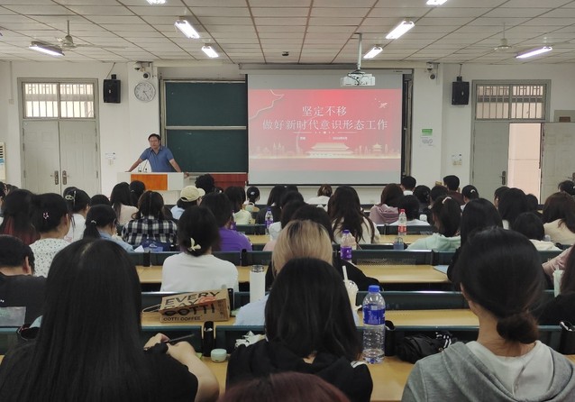 523日下午,語言文化與傳媒學(xué)院2023年入黨積極分子培訓(xùn)班第三次理論授課在一區(qū)善思樓A101教室舉行。本次黨課由校黨委委員、宣傳(統(tǒng)戰(zhàn))部部長賈峰主講,題目為“堅定不移做好新時代意識形態(tài)工作”,我院及旅游與會展學(xué)院本期入黨積極分子培訓(xùn)班學(xué)員參加,黨課由語言文化與傳媒學(xué)院黨委書記儲昭輝主持。