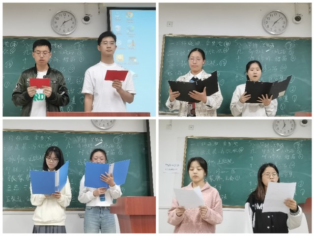 本次活動以比賽的形式呈現(xiàn),黨員們兩人一組,每組3分鐘的時(shí)間,自行節(jié)選《習(xí)近平新時(shí)代中國特色社會主義思想專題摘編》原文誦讀。比賽開始,舒緩的背景音樂配合著黨員同學(xué)們字正腔圓的聲音,在309教室里激起聲聲回響,展示結(jié)束后黨員同學(xué)們又當(dāng)場進(jìn)行了投票,選出自己認(rèn)為今天表現(xiàn)最佳的同學(xué)。