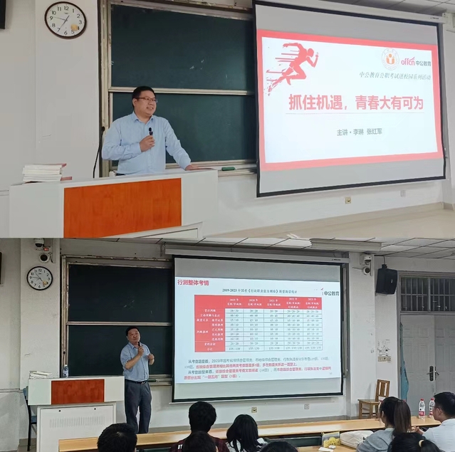 920日晚630,語(yǔ)言文化與傳媒學(xué)院與“職為你來(lái)”大學(xué)生職業(yè)生涯規(guī)劃與就業(yè)指導(dǎo)名師工作室在一區(qū)善思樓C101教室聯(lián)合舉辦大學(xué)生公職就業(yè)計(jì)劃宣講。本次講座有幸邀請(qǐng)到了中公教育名師李琳、張紅軍進(jìn)行主講,語(yǔ)言文化與傳媒學(xué)院黨委副書(shū)記張愛(ài)萍受邀出席。