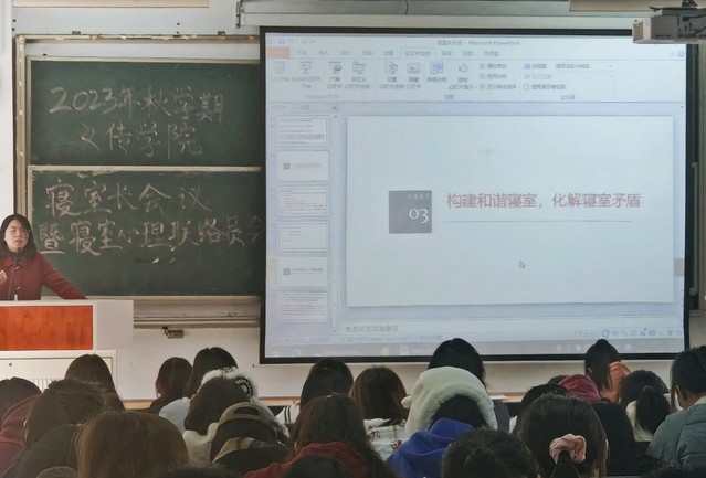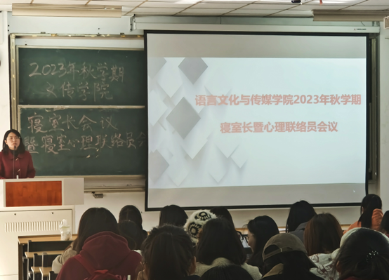 為充分發(fā)揮寢室長、心理聯(lián)絡(luò)員在學(xué)院心理健康教育中的重要作用,進(jìn)一步加強(qiáng)學(xué)生安全管理,11月17日,語言文化與傳媒學(xué)院在5號(hào)樓101教室召開了2023年秋學(xué)期寢室長暨心理聯(lián)絡(luò)員會(huì)議,學(xué)工辦主任顧盼盼和各年級(jí)寢室長、心理聯(lián)絡(luò)員參加了本次會(huì)議。