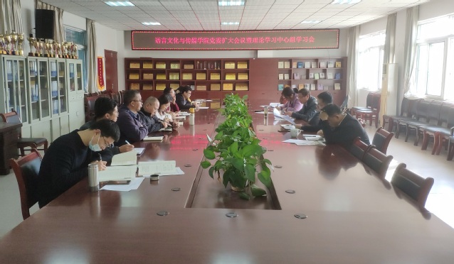 12月8日上午,語言文化與傳媒學院在學院大會議室召開黨委擴大會議暨理論學習中心組學習會,學院黨政領導班子成員、黨委委員、紀委委員、科級干部及各黨支部書記、系(中心)主任參加會議,會議由院黨委書記儲昭輝主持。