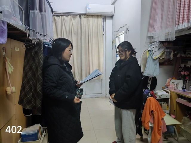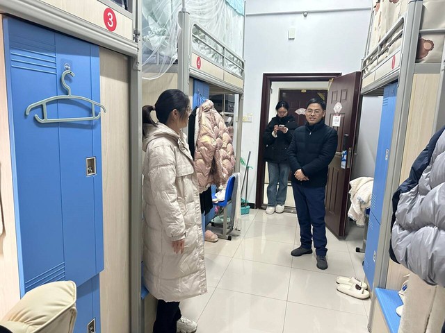 走訪過程中,院領(lǐng)導(dǎo)和教師們對(duì)學(xué)生宿舍的用電安全、衛(wèi)生情況進(jìn)行了詳細(xì)的了解,特別強(qiáng)調(diào)入冬以來同學(xué)們要嚴(yán)格遵守宿舍管理相關(guān)規(guī)定。此外,老師們還特別詢問了同學(xué)們?cè)谄谀﹤淇挤矫娴膯栴}及困難,鼓勵(lì)同學(xué)們要珍惜時(shí)間、合理規(guī)劃,認(rèn)真復(fù)習(xí),以優(yōu)異的成績(jī)?yōu)楸緦W(xué)期畫上一個(gè)圓滿的句號(hào)。