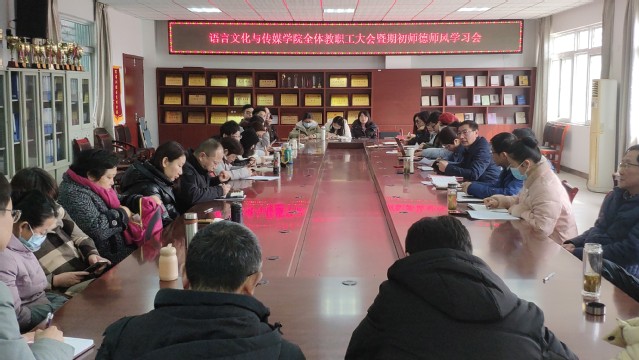 2月27日上午,語(yǔ)言文化與傳媒學(xué)院在一期五棟二樓會(huì)議室召開新學(xué)期全體教職工大會(huì)暨期初師德師風(fēng)學(xué)習(xí)會(huì),布置新學(xué)期各項(xiàng)工作。