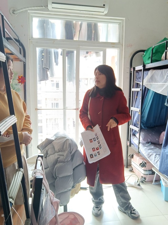 走訪過程中,老師們與同學(xué)們親切交談,詳細(xì)了解他們的學(xué)習(xí)和生活情況,叮囑同學(xué)們要提高防范電信詐騙意識(shí),注意自己的人身和財(cái)物安全,注意預(yù)防各類春季流行病等。張愛萍書記特別強(qiáng)調(diào)同學(xué)們要遵守校規(guī)校紀(jì),不要使用大功率電器;寢室同學(xué)應(yīng)相互幫助,發(fā)現(xiàn)身邊的同學(xué)面臨就業(yè)困難、情感問題、焦慮情緒等,要及時(shí)給予關(guān)心,并尋求輔導(dǎo)員和老師的幫助。