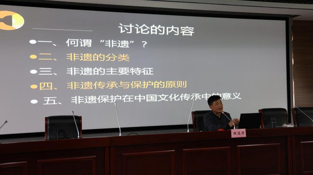 講座圍繞非遺文化的價值和傳承意義展開,程教授用大量生動的案例和圖片講述“非遺”的由來、類別和特征,呈現(xiàn)“非遺”的獨(dú)特魅力、保護(hù)原則和在中國文化傳承中的意義,并結(jié)合自身經(jīng)歷,闡述非遺文化傳承的重要性,提醒同學(xué)們傳承非遺,時不我待。