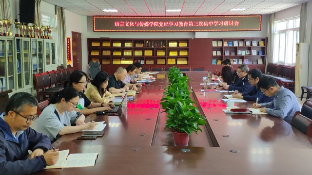5月14日上午,語言文化與傳媒學(xué)院在一期五棟二樓會(huì)議室舉行黨紀(jì)學(xué)習(xí)教育第三次集中學(xué)習(xí)暨黨委理論學(xué)習(xí)中心組集中學(xué)習(xí)研討會(huì)。學(xué)院領(lǐng)導(dǎo)班子成員、黨委委員、紀(jì)委委員、科級(jí)干部及各黨支部書記、系(中心)主任參加會(huì)議,會(huì)議由院黨委書記儲(chǔ)昭輝主持。