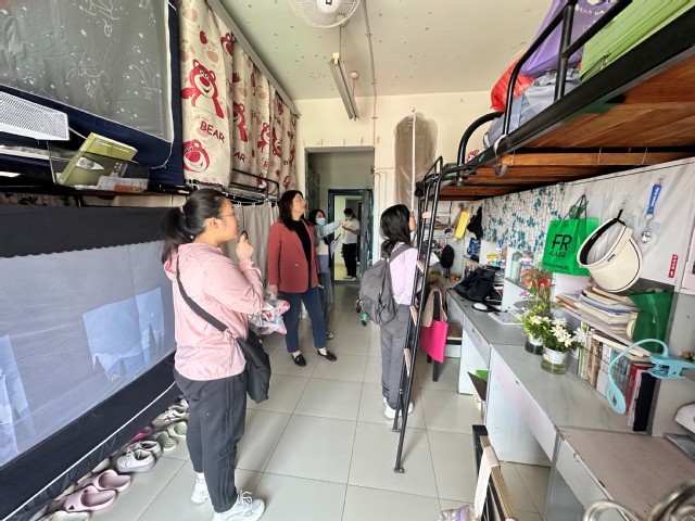 2024年5月23日,語言文化與傳媒學(xué)院院長丁增武、院黨委副書記張愛萍帶領(lǐng)全體專職輔導(dǎo)員分批前往學(xué)生宿舍開展安全衛(wèi)生專項檢查活動。