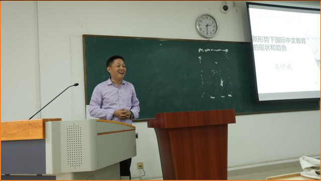 講座中,吳教授對(duì)國(guó)際中文教育的當(dāng)前發(fā)展、人才需求、專業(yè)素養(yǎng)、能力養(yǎng)成等核心議題,從就業(yè)去向、碩士培養(yǎng)、論文寫作、基地建設(shè)等多個(gè)方面深入分析。