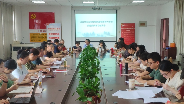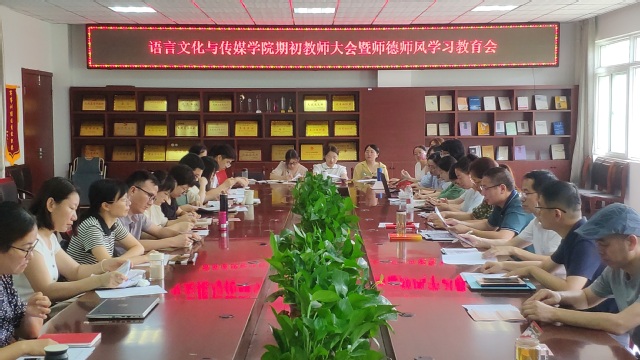 8月30日上午,語言文化與傳媒學(xué)院在五棟二樓會議室舉行了全院教師大會暨期初師德師風(fēng)學(xué)習(xí)教育會,學(xué)院領(lǐng)導(dǎo)班子成員及全體教職工參加會議。