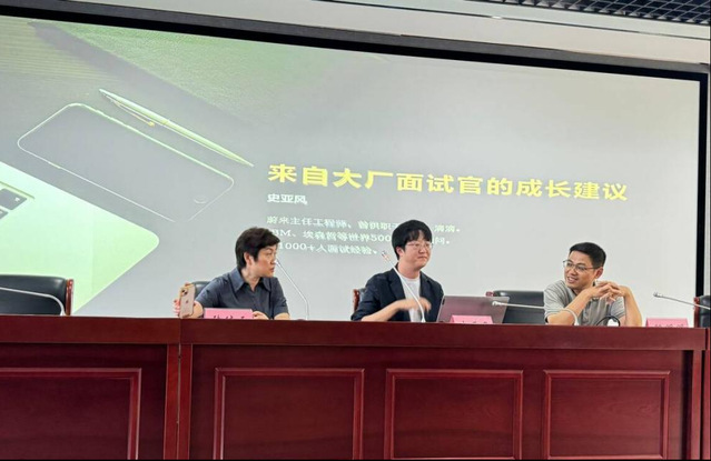史亞風(fēng)首先向同學(xué)們介紹了當(dāng)下新興產(chǎn)業(yè)和大型企業(yè)的部門(mén)設(shè)置、職位要求、用人標(biāo)準(zhǔn),幫助即將畢業(yè)的大學(xué)生們了解和找準(zhǔn)自己的行業(yè)賽道。隨后,從自己擔(dān)任面試官的視角,史亞風(fēng)和同學(xué)們分享了頭部大廠的面試經(jīng)驗(yàn),講述在面試中應(yīng)關(guān)注的重點(diǎn),強(qiáng)調(diào)實(shí)踐背景、獲獎(jiǎng)證書(shū)等在面試中的重要性。