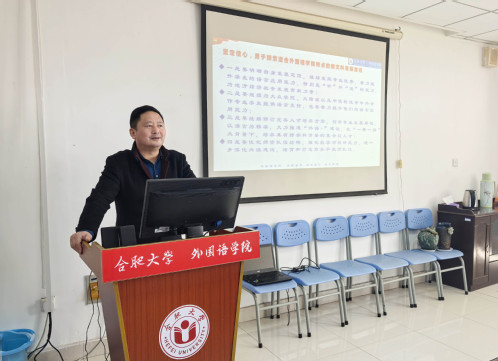 隨后,吳書記結(jié)合學(xué)習(xí)貫徹黨的二十屆三中全會精神傳達(dá)了任永校長調(diào)研外國語學(xué)院的指示和要求。吳書記著重強(qiáng)調(diào)了任永校長針對外國語學(xué)院的定位和特點(diǎn)提出的四點(diǎn)希望和要求,一是要明晰自身發(fā)展定位,繼續(xù)發(fā)揮專業(yè)優(yōu)勢,著力提升學(xué)生的語言應(yīng)用能力,特別是“聽”和“說”的能力,為地方經(jīng)濟(jì)社會發(fā)展貢獻(xiàn)力量;二是要繼續(xù)為大眾學(xué)院、大陸班以及中德物流等中外合作專業(yè)學(xué)生提供語言支持,也要著力提升他們的語言應(yīng)用能力;三是要繼續(xù)修訂完善人才培養(yǎng)方案,創(chuàng)新專業(yè)發(fā)展路徑,以語言為橋梁,大力推進(jìn)“外語+”建設(shè),在“一帶一路”大背景下,培養(yǎng)具有跨學(xué)科背景的復(fù)合型人才;四是要優(yōu)化師資隊(duì)伍結(jié)構(gòu),強(qiáng)化教學(xué)與教研能力,進(jìn)一步深化內(nèi)涵建設(shè),培育和打造高水平教師隊(duì)伍。全院師生要堅定信心,積極探索適合外國語學(xué)院特點(diǎn)的新文科發(fā)展路徑。