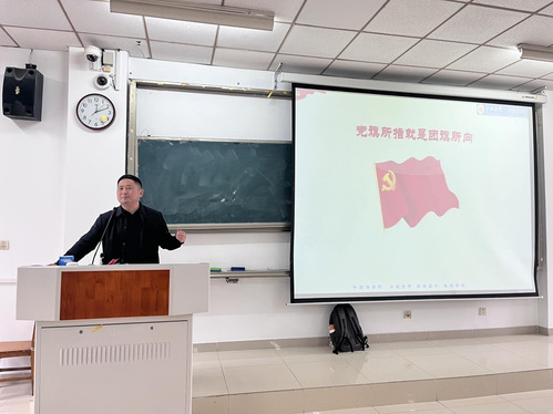 吳孔寶以“黨旗所指就是團(tuán)旗所向”為主題,聚焦黨建帶團(tuán)建工作,圍繞落實(shí)立德樹(shù)人根本任務(wù),從強(qiáng)化創(chuàng)新理論武裝、嚴(yán)守意識(shí)形態(tài)紅線、實(shí)現(xiàn)較高質(zhì)量發(fā)展、夯實(shí)骨干隊(duì)伍建設(shè)、選樹(shù)學(xué)生模范典型、筑牢安全穩(wěn)定底線六個(gè)方面展開(kāi)授課,強(qiáng)調(diào)廣大團(tuán)員青年和學(xué)生干部要放眼世界、砥礪品行、追求卓越,要凝聚青春力量,引領(lǐng)校風(fēng)學(xué)風(fēng)。結(jié)合學(xué)院“外語(yǔ)+”專業(yè)建設(shè)特點(diǎn),吳孔寶鼓勵(lì)廣大學(xué)子要努力提升自己的思想政治素養(yǎng)和外語(yǔ)聽(tīng)說(shuō)能力,要積極參加各類競(jìng)賽,以賽促學(xué)。吳孔寶要求廣大團(tuán)學(xué)干部要積極作為,充分發(fā)揮團(tuán)組織的引領(lǐng)力、服務(wù)力、組織力及大局貢獻(xiàn)度,切實(shí)提升黨建帶團(tuán)建工作質(zhì)效。