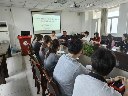 為積極響應國家鄉(xiāng)村振興戰(zhàn)略,引導青年學子在社會實踐中厚植家國情懷、錘煉過硬本領,6月19日中午外國語學院于一期八棟三樓會議室組織召開2025年暑期“三下鄉(xiāng)”社會實踐活動啟動儀式暨動員大會。外國語學院黨委書記吳孔寶、指導教師張正華及“三下鄉(xiāng)”團隊全體成員參加了會議。