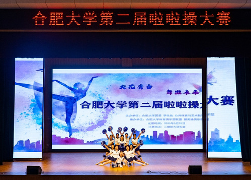 5 月 25 日晚 18:30,合肥大學(xué)第二屆啦啦操大賽在新大學(xué)生活動中心二樓禮堂盛大開場。本次大賽吸引了眾多學(xué)院的隊(duì)伍踴躍參與,現(xiàn)場座無虛席,洋溢著青春的活力與激情。