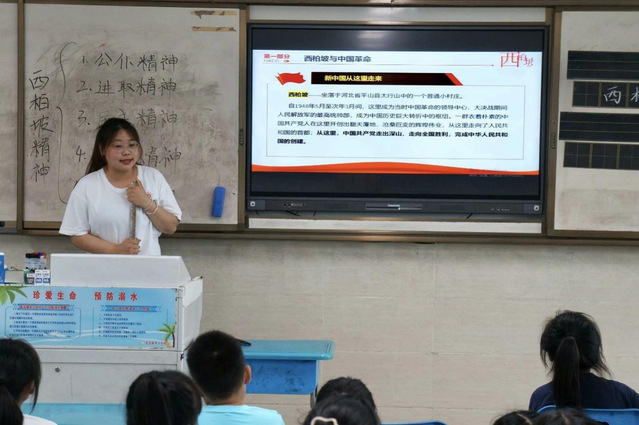 7月10日上午九點,“語”你同行鄉(xiāng)村振興團于高店鎮(zhèn)中心學校舉辦了一場意義非凡的西柏坡精神宣講活動,旨在通過深入學習和宣傳西柏坡精神,激發(fā)少年兒童的愛國熱情和責任意識。活動中,來自不同年級的學生齊聚一堂,共同回顧西柏坡對中國革命歷史的重要意義,探討如何在當下弘揚和感悟這一精神。