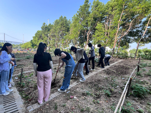 5月25日上午,外國語學院的學生志愿者們齊聚三期籃球場旁,開始了他們一天的志愿活動——合耕園種植。