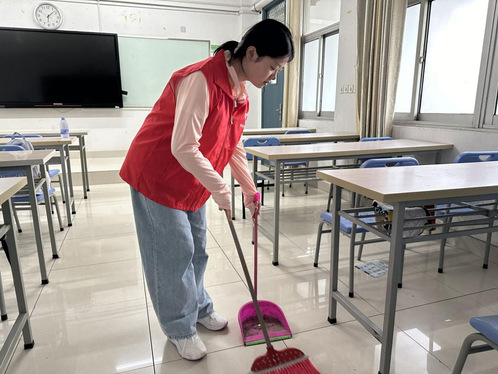 為提升學(xué)生的勞動意識與環(huán)保意識,營造干凈整潔的學(xué)習(xí)環(huán)境,外國語學(xué)院于5月8日至11日晚18:00在一期八棟教學(xué)樓開展了“勞動周”清掃教室志愿活動。