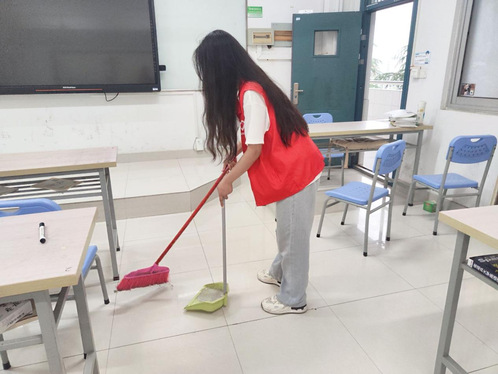 下午六點(diǎn),志愿者們準(zhǔn)時來到一期八棟教學(xué)樓對教室進(jìn)行清掃。負(fù)責(zé)人布置了本次活動的具體任務(wù)并將志愿者們分成幾個不同的小組,每組志愿者分工明確,負(fù)責(zé)對不同的區(qū)域進(jìn)行打掃和清理。他們穿著統(tǒng)一的志愿者服裝,手持掃帚、拖把和抹布,有條不紊地在教室內(nèi)開展清潔工作。勞動過程中,每個人都積極參與,干勁十足,從“心”開始,從“細(xì)”著手,認(rèn)真打掃地面、整理桌椅,對教室的每個角落都進(jìn)行了仔細(xì)的清理,確保不留清潔盲區(qū)。在志愿者們的團(tuán)結(jié)協(xié)作下,教學(xué)樓的教室面貌煥然一新,為師生們提供了一個更加舒適的學(xué)習(xí)環(huán)境。