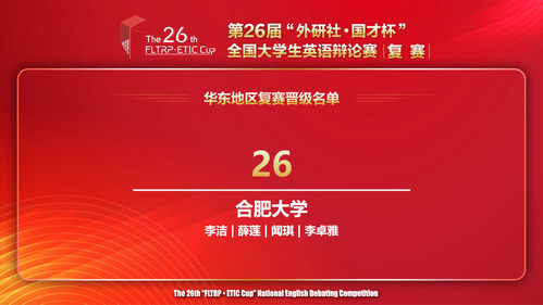 “外研社·國才杯”全國大學(xué)生英語辯論賽2023年全國普通高校學(xué)科競賽排行榜內(nèi)競賽項目,由北京外國語大學(xué)主辦,外語教學(xué)與研究出版社、北京外國語大學(xué)中國外語測評中心、北京外研在線數(shù)字科技有限公司承辦。本屆大賽于2023年11月啟動復(fù)賽分為華北、華東、華南和華西四個賽區(qū),采取線上比賽的形式。復(fù)賽包含五輪循環(huán)賽和總決賽。在循環(huán)賽環(huán)節(jié),各參賽隊伍須完成5輪比賽獲得相應(yīng)積分。最后,積分排名靠前的隊伍獲得全國決賽的參賽資格。