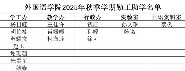 外國(guó)語(yǔ)學(xué)院2025年秋季學(xué)期勤工助學(xué)名單