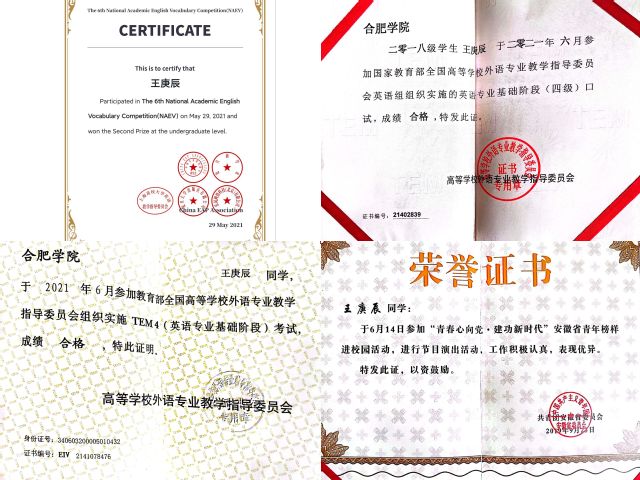 萬事須已遠,他得百我閑。青春須早為,豈能常少年。世間萬事都必須從長遠打算,年少時需要及時作為,因為人無法一直保持著青春年少。作為青年人,應(yīng)珍惜韶華,潛心讀書,敏于求知。年輕是優(yōu)勢、是資本,學習的路途才剛剛起步,工作的生涯還很長,夢想有多遠,舞臺就有多大。但夢想從學習開始,事業(yè)靠本領(lǐng)成就。王庚辰剛開始對就業(yè)的認知并不明確,在對自己未來的職業(yè)做出清晰的規(guī)劃后,他堅定了考研的想法。王庚辰認為通過考研,不僅能夠提升自己的專業(yè)水平,還能更好地了解專業(yè)相關(guān)工作的發(fā)展趨勢,通過提高自身本領(lǐng),從而在未來的工作生涯中提升自身競爭力。對于考研中的生活,王庚辰坦言,自己雖無法做到一整天泡在圖書館,但他會保證學習效率,在學習的時間里只做學習的事。例如他在下午兩點到晚上十點半在圖書館的時間內(nèi),他會確保學習一小時休息十分鐘的節(jié)奏完成既定目標。品行端正是做人的根本,勤勞用功是上進的階梯。正因為勤勞奮斗,王庚辰在大學里也獲得了許多證書,一分耕耘一分收獲,想要多大的收獲就要多大的付出,越努力才會越幸運。