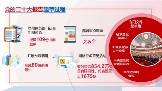 為了讓學員們對黨的二十大有更加全面的理解,金老師首先介紹了黨代會的地位和功能。結(jié)合二十大相關(guān)主題視頻,金麗老師講解了黨的二十大報告的起草過程,并詳細敘述了二十大報告中提高人民生活品質(zhì)、增進民生福祉的重大意義、目標與基本原則以及具體思路和對策措施。在積極參與金老師組織的線上互動過程中,各位培訓班學員深入了解和體會了黨的十八大以來我們國家取得的歷史成就。