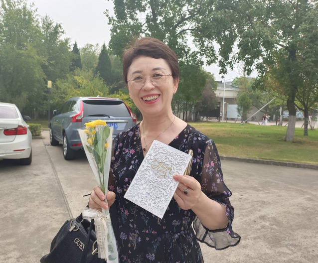 朵朵鮮花點(diǎn)綴著老師們的笑靨,一言一語(yǔ)娓娓道來難忘師情。“老師,教師節(jié)快樂!”誠(chéng)摯的祝福表達(dá)著同學(xué)們發(fā)自心底的感謝,感謝老師們的敦敦教誨、無(wú)私奉獻(xiàn)與一路相伴。收到賀卡和鮮花的老師們面露微笑,并對(duì)同學(xué)們的暖心準(zhǔn)備表示感謝。