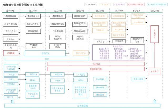 1. 韓語(yǔ)專業(yè)技能模塊:專業(yè)導(dǎo)論(韓)、基礎(chǔ)韓語(yǔ)、高級(jí)韓語(yǔ)、韓語(yǔ)視聽說、韓語(yǔ)閱讀、基礎(chǔ)韓語(yǔ)寫作、應(yīng)用韓語(yǔ)寫作、韓漢互譯、托業(yè)英語(yǔ)