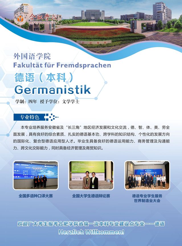 本專業(yè)借鑒德國(guó)應(yīng)用型大學(xué)辦學(xué)經(jīng)驗(yàn)和歐洲“面向行動(dòng)”先進(jìn)外語教育教學(xué)理念;強(qiáng)調(diào)人才培養(yǎng)跨學(xué)科性,培養(yǎng)具有語言運(yùn)用、商務(wù)管理、跨文化交際等能力的復(fù)合型人才;將新媒體和互聯(lián)網(wǎng)等現(xiàn)代教育信息技術(shù)引入課堂教學(xué),提升教學(xué)效果;與德國(guó)高校共建國(guó)際化交流平臺(tái),拓寬學(xué)生學(xué)習(xí)視野。
