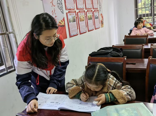 每天下午四點(diǎn),兩名志愿者會(huì)準(zhǔn)時(shí)到達(dá)社區(qū),在相關(guān)人員的帶領(lǐng)下來到學(xué)習(xí)地點(diǎn)。首先,孩子們獨(dú)立自主完成作業(yè),對于作業(yè)完成過程中遇到的問題,志愿者們用淺顯易懂的方式答疑解惑,并且分享自己的學(xué)習(xí)心得與經(jīng)驗(yàn)。作業(yè)完成后志愿者們還通過跳舞、唱歌、做游戲等互動(dòng)方式營造輕松愉悅的氛圍,鼓勵(lì)孩子們積極參與活動(dòng),勇敢地表達(dá)自己的想法。