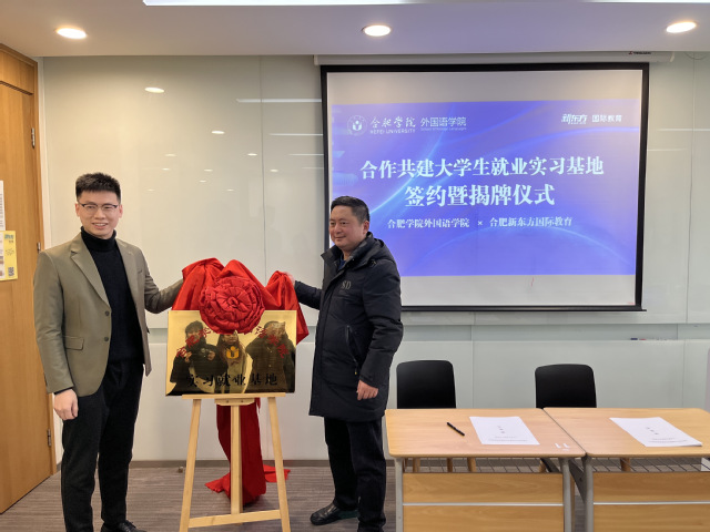 張鑄鵬介紹了新東方國際教育培訓(xùn)中心的發(fā)展過程、業(yè)務(wù)范圍和人才需求,希望借此機(jī)會(huì)深入交流,加強(qiáng)合作。緊接著,校友代表許晶發(fā)言。她介紹了在校和工作期間的心得和感悟,表達(dá)了對(duì)母校的感激之情。最后,雙方進(jìn)行了就業(yè)實(shí)習(xí)基地的簽約和揭牌儀式。