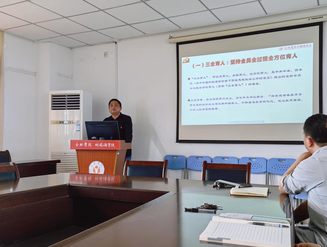 根據(jù)學(xué)校主題教育理論學(xué)習(xí)工作安排和《外國(guó)語(yǔ)學(xué)院學(xué)習(xí)貫徹習(xí)近平新時(shí)代中國(guó)特色社會(huì)主義思想主題教育實(shí)施方案》,5月23日下午,外國(guó)語(yǔ)學(xué)院黨委副書(shū)記、紀(jì)委書(shū)記吳孔寶“聚焦以生為本,強(qiáng)化問(wèn)題導(dǎo)向堅(jiān)持系統(tǒng)觀念,推動(dòng)外國(guó)語(yǔ)學(xué)院三全育人體系走深走實(shí)”為主題,為全體師生黨員講授主題教育專題黨課。
