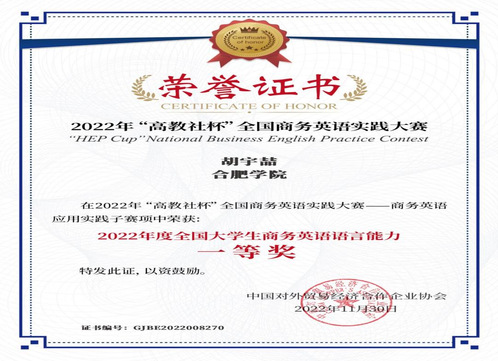 胡宇喆同學(xué)在過去的學(xué)年里,表現(xiàn)出了高漲的學(xué)術(shù)熱情和嚴(yán)謹(jǐn)?shù)膶W(xué)習(xí)態(tài)度。積極參與各類學(xué)術(shù)競賽項(xiàng)目,不斷探索新的個(gè)人提升領(lǐng)域,脫離自己的舒適區(qū),且取得了顯著的成果。其中包括2022年“高教社杯”全國商務(wù)英語實(shí)踐大賽子賽一等獎(jiǎng)、黨的二十大報(bào)告翻譯大賽一等獎(jiǎng)、2022年“訊飛杯”全國高校英語口語大賽安徽賽區(qū)一等獎(jiǎng)2023全國大學(xué)生英語競賽B類二等獎(jiǎng)、國家勵(lì)志獎(jiǎng)學(xué)金和特等獎(jiǎng)學(xué)金等等。此外,還積極參與社會(huì)服務(wù),2023年“中國航天日”志愿活動(dòng)中服務(wù)30個(gè)小時(shí),不僅培養(yǎng)了她為他人服務(wù)的責(zé)任心,也為社區(qū)服務(wù)做出了積極的貢獻(xiàn)。