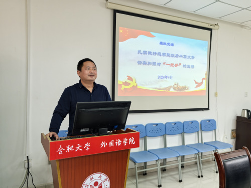 為進一步推進黨紀學習教育,強化黨風廉政建設,深化全體黨員師生對全面從嚴治黨重要性的認識,營造清正廉潔的干事創(chuàng)業(yè)氛圍,429日下午230分,外國語學院黨委書記吳孔寶為全體黨員師生講授題為《扎實做好巡察整改后半篇文章,切實加強對“一把手”的監(jiān)督》主題黨課。
