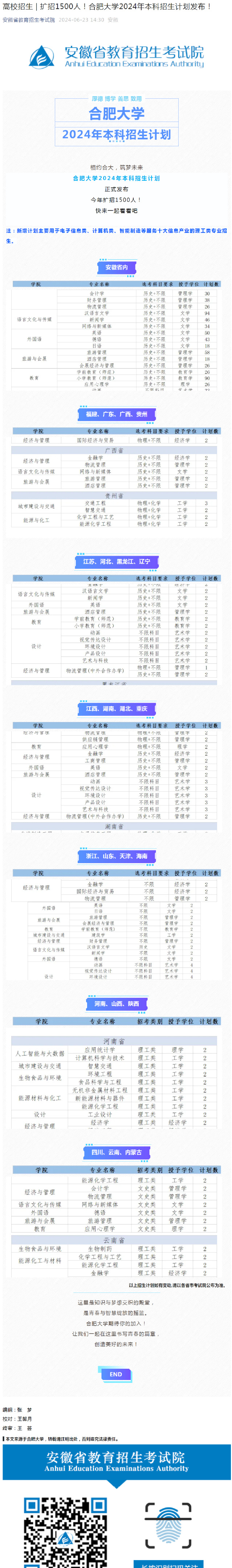 高校招生 | 擴招1500人!合肥大學2024年本科招生計劃發(fā)布!